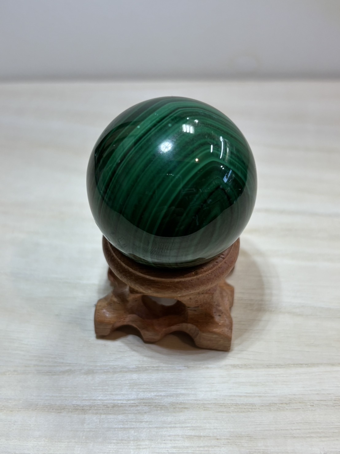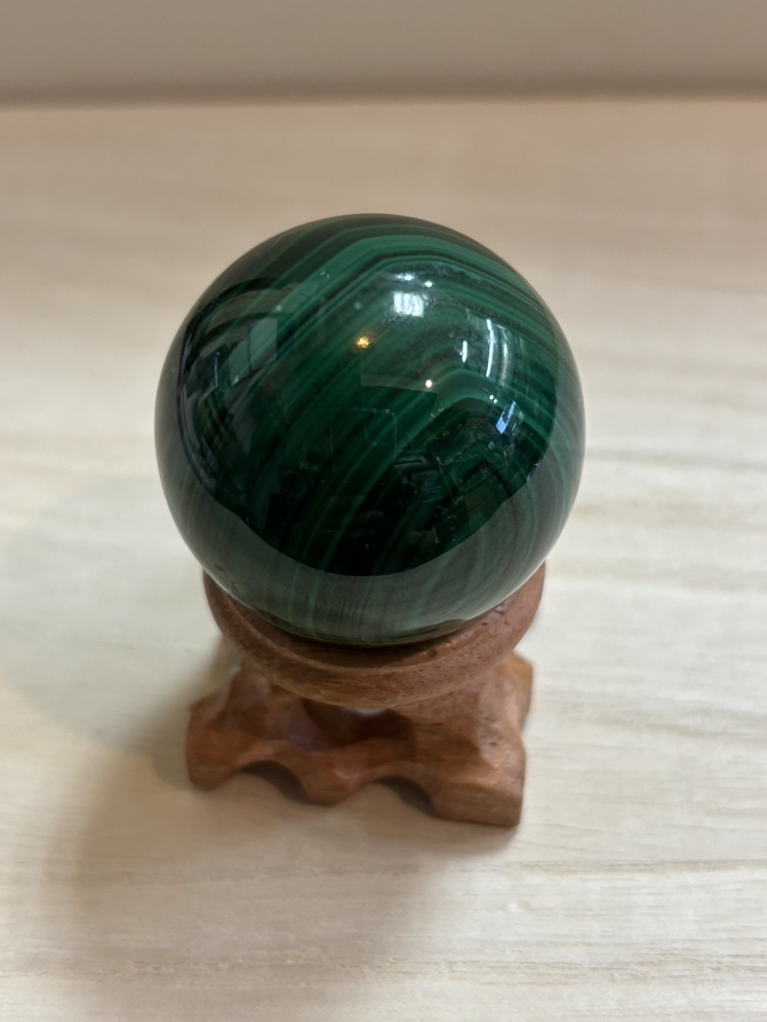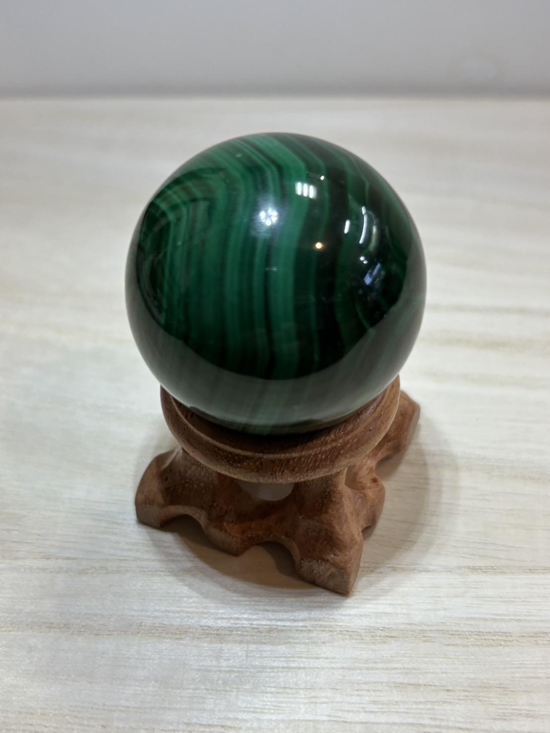 マラカイト 丸玉 木製台座付き