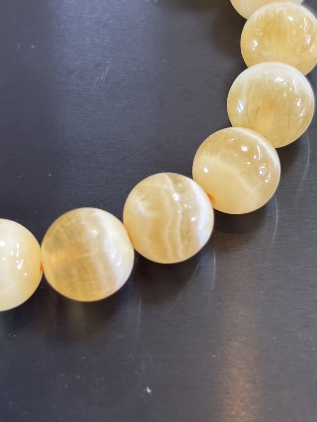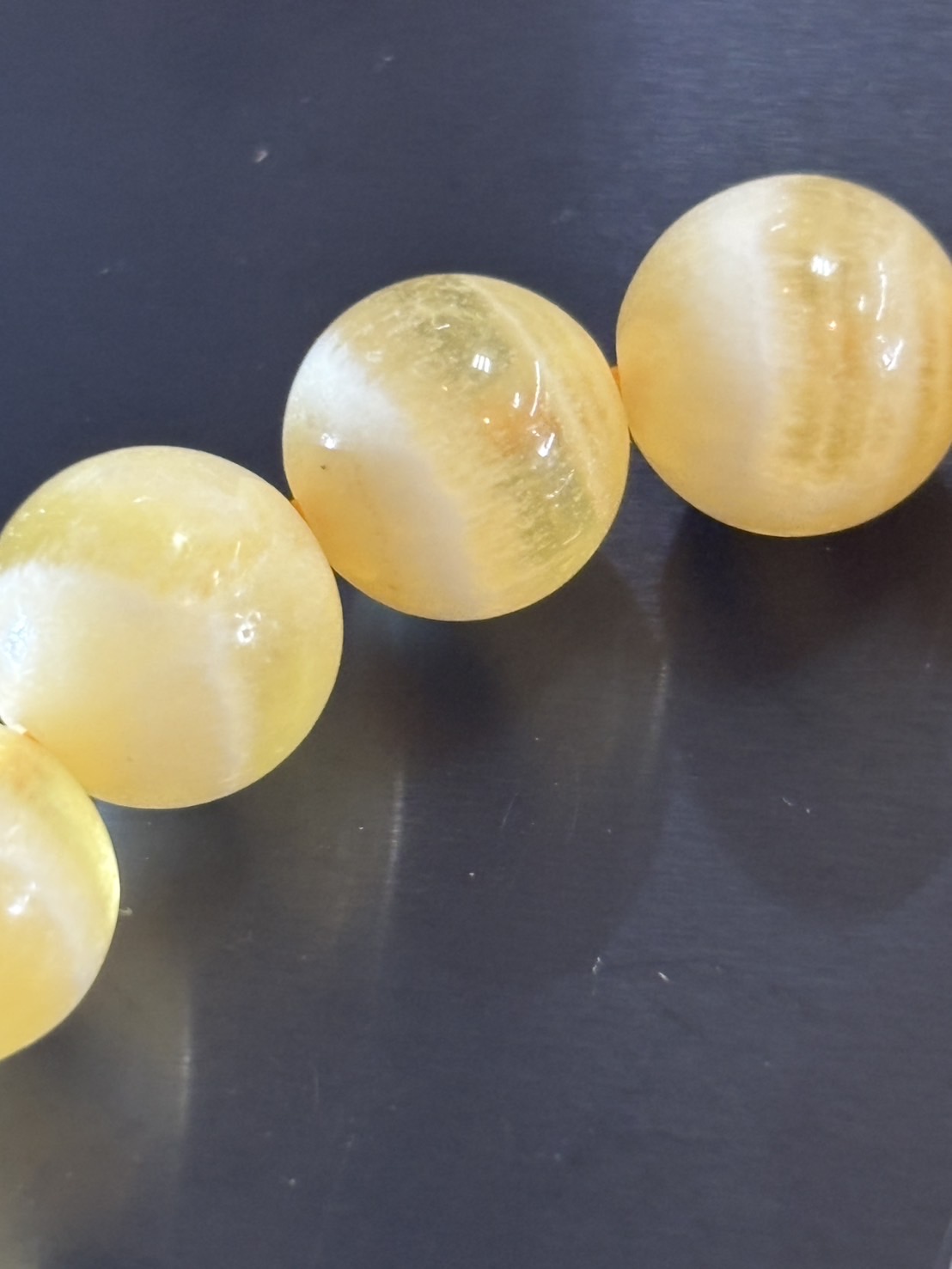 少し透明感がある珍しいイエローカルサイトのブレスレットです。