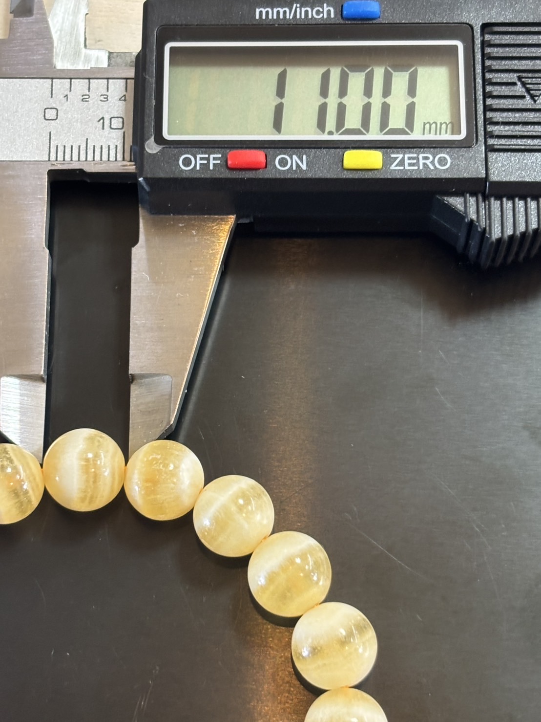 イエローカルサイト ブレスレット 11ミリ珠 腕サイズ16センチ