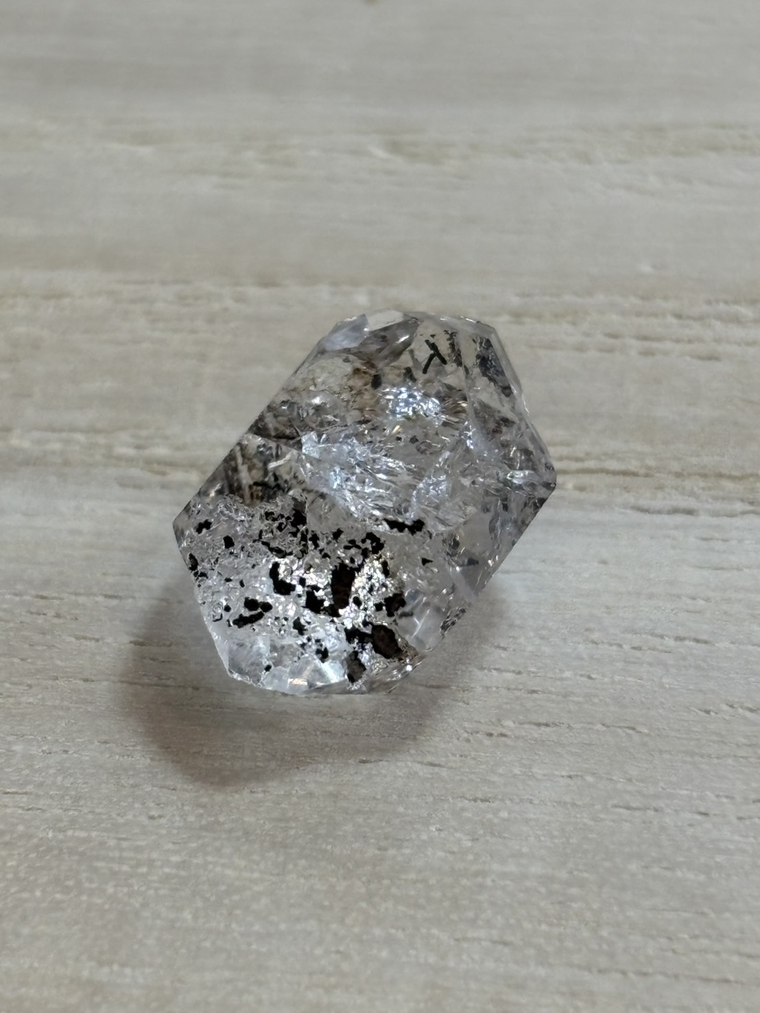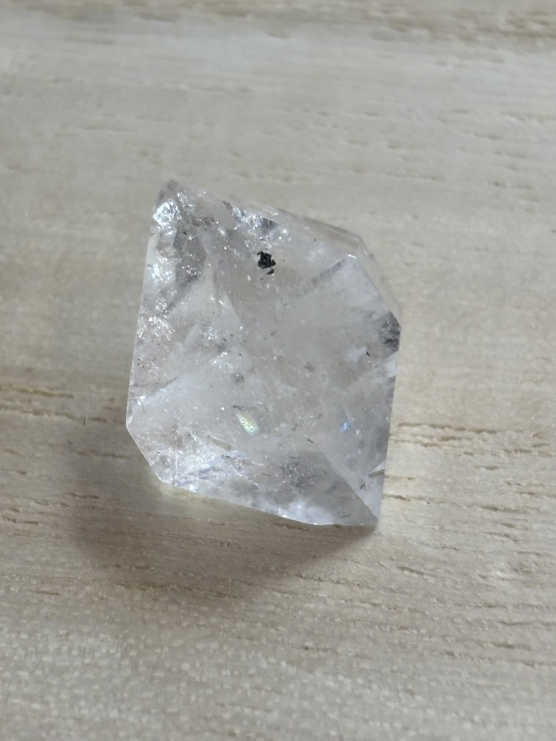 • 見た目:両端が尖った「ダブルターミネーテッド(水晶の結晶が両方とも尖っている)」で産出されることが多く、非常に透明度が高いのが特徴です。